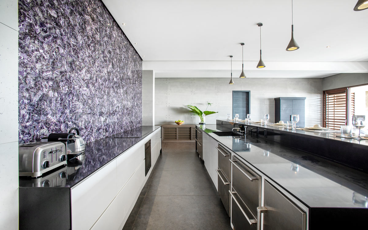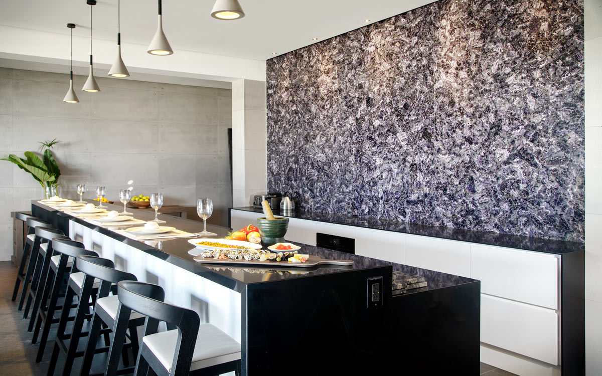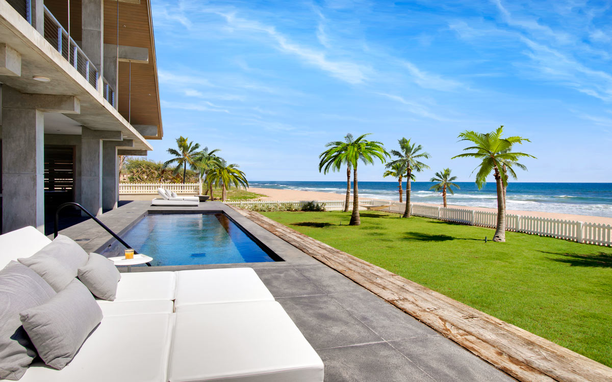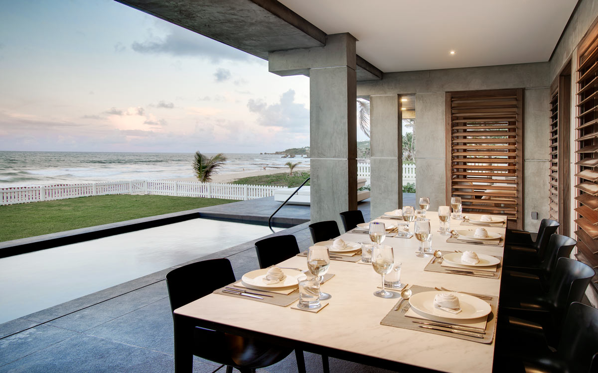 Set on the dramatic East Coast of Barbados on Cattlewash Beach, this villa is the first ultra-modern luxury offering of its kind on this unforgettable stretch. Cutting-edge architecture is boldly wrought with clean, concrete lines, beautifully accented by swathes of agate which burst out like fountains of shimmering color.The ultimate in luxury interiors results in open-plan living that spills out over the swimming pool toward the magnificent Atlantic Ocean.Note that this area is relatively unpopulated. That’s OK, though, because with your own capable staff of chef and housekeepers, you won’t need to stray far.The property is of particular interest to true ocean-lovers; the Atlantic is not as placid as the Platinum Coast on the other side of the island. Bring your board; it’s right near some of the Caribbean’s premier surf breaks.
