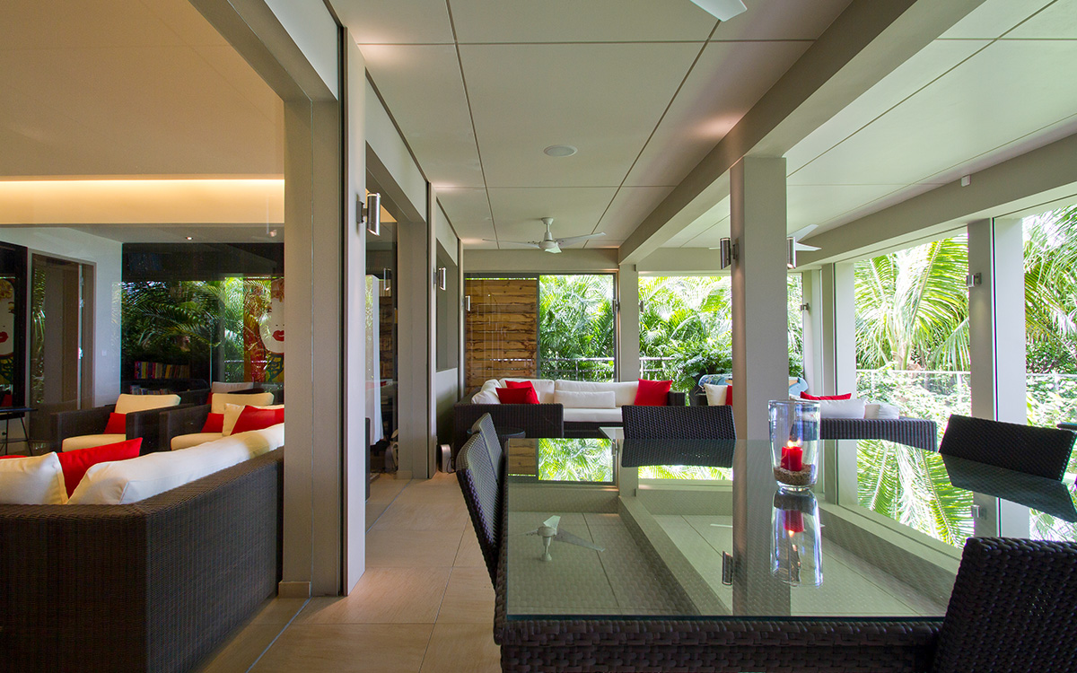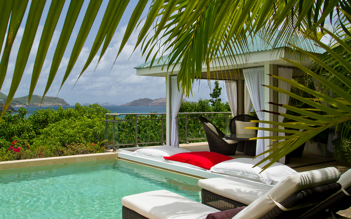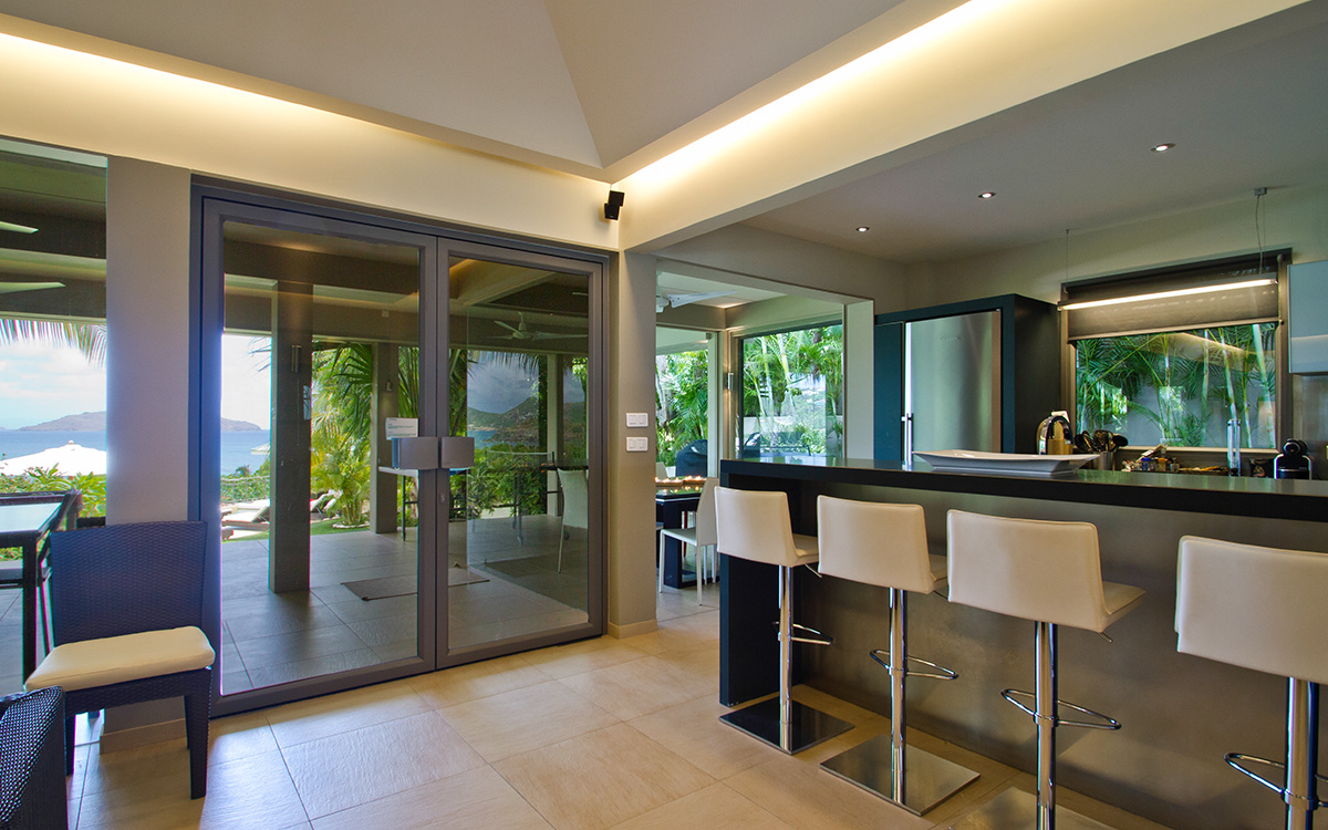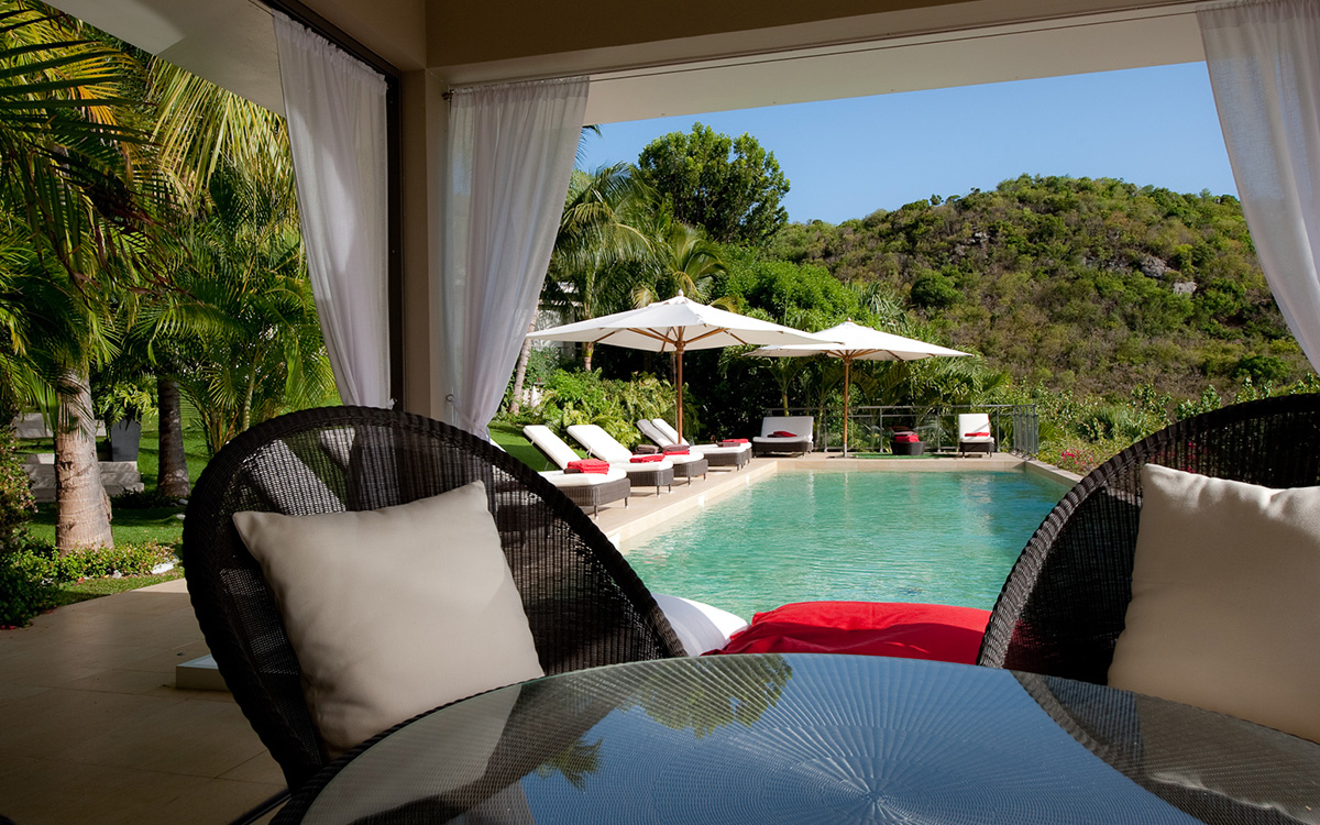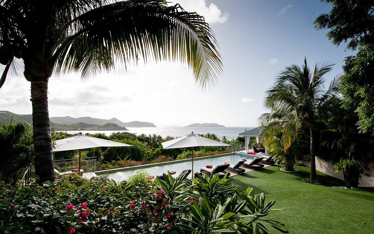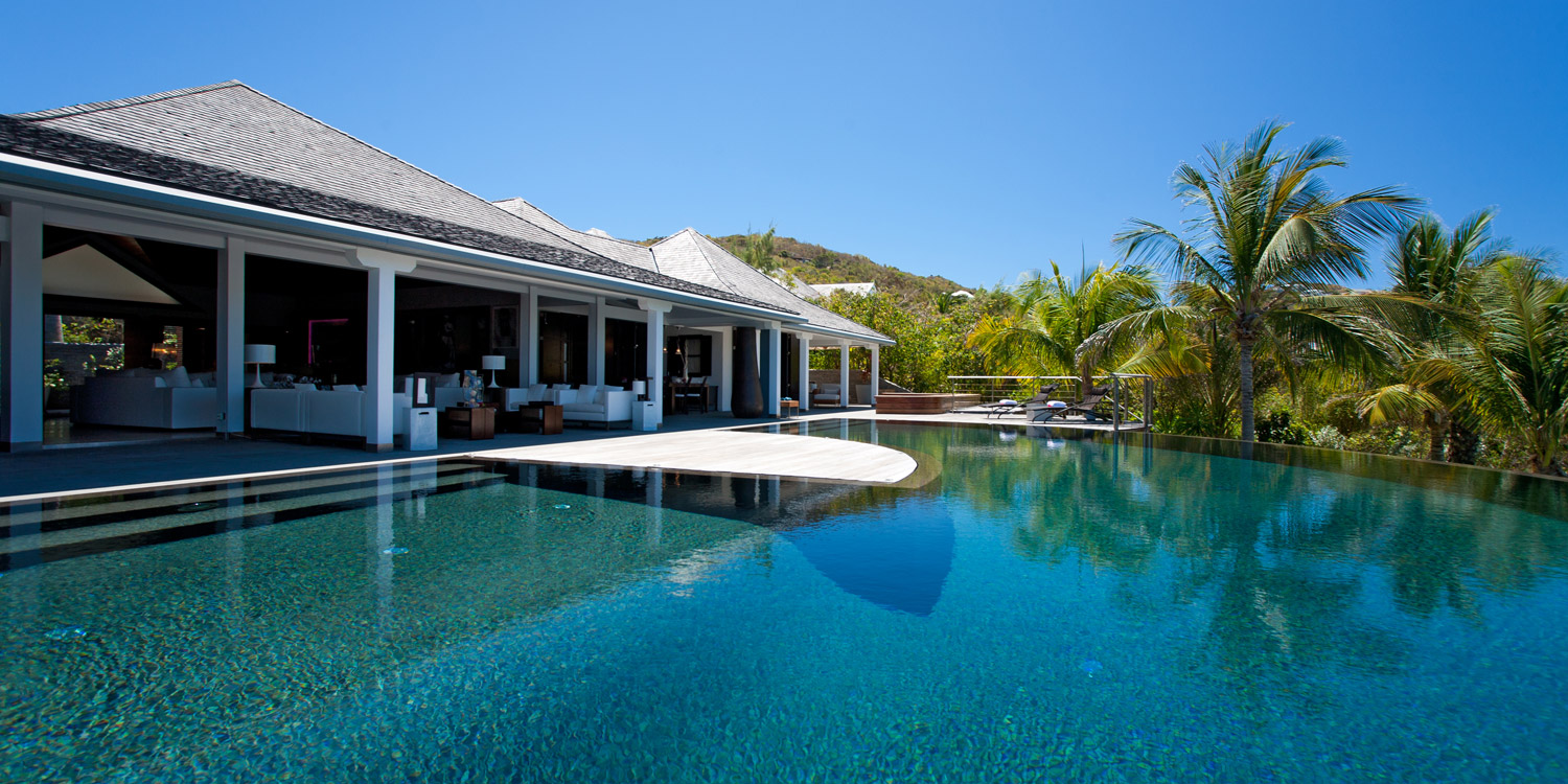 Villa Cumulus, also known as WV CML, is a 6-bedroom villa located in Lorient within minutes of the beach and shopping. This villa offers views of the bay and nearby islands.This "green" estate offers many energy-saving systems, such as solar panels and water recycling. Vegetation has been carefully planted to maximize shade and air circulation. An inverter central system air-conditioner requires different units of the estate to be closed off completely to maintain air-conditioning.The bright and modern living room has glass doors, which open onto a terrace with ocean views. Located off the living room is a well-stocked library, which is perfect for book lovers. The gourmet kitchen, with a wine cooler and charcoal barbecue, faces the view and opens to an outdoor dining area with seating for 14 guests.Four bedrooms are located around the tropical gardens and have king-size beds and ensuite bathrooms with rain showers (one shower is outdoors). The fifth bedroom, located downstairs next to the well-equipped fitness area, has a king-size bed, kitchenette, living area, and an attached private bathroom with rain shower. The sixth bedroom is located in a classic Creole-style bungalow and is ideal for children, with beds and furnishings all adapted to a smaller scale. Two bedrooms, each with a twin bed, living area and kitchenette.Loungers surround the large pool on the terrace, which has an outdoor living area, ping-pong table, and petanque court. The house also comes with WiFi, U.S. and French satellite TV, and laundry services for children's clothes upon request.Villa Cumulus comes with house cleaning services six days a week, except on holidays. During the December holidays, the villa rents at the full occupancy rate regardless of how many bedrooms are used. This villa is suitable for young children but does not allow pets or smoking.