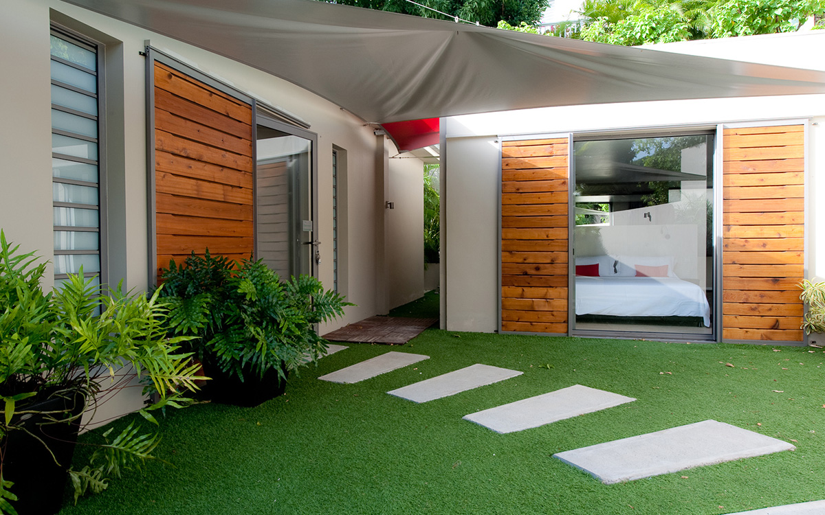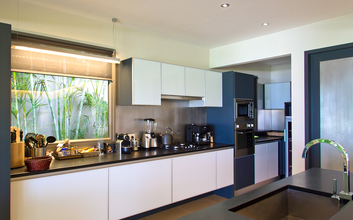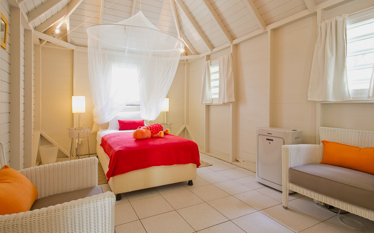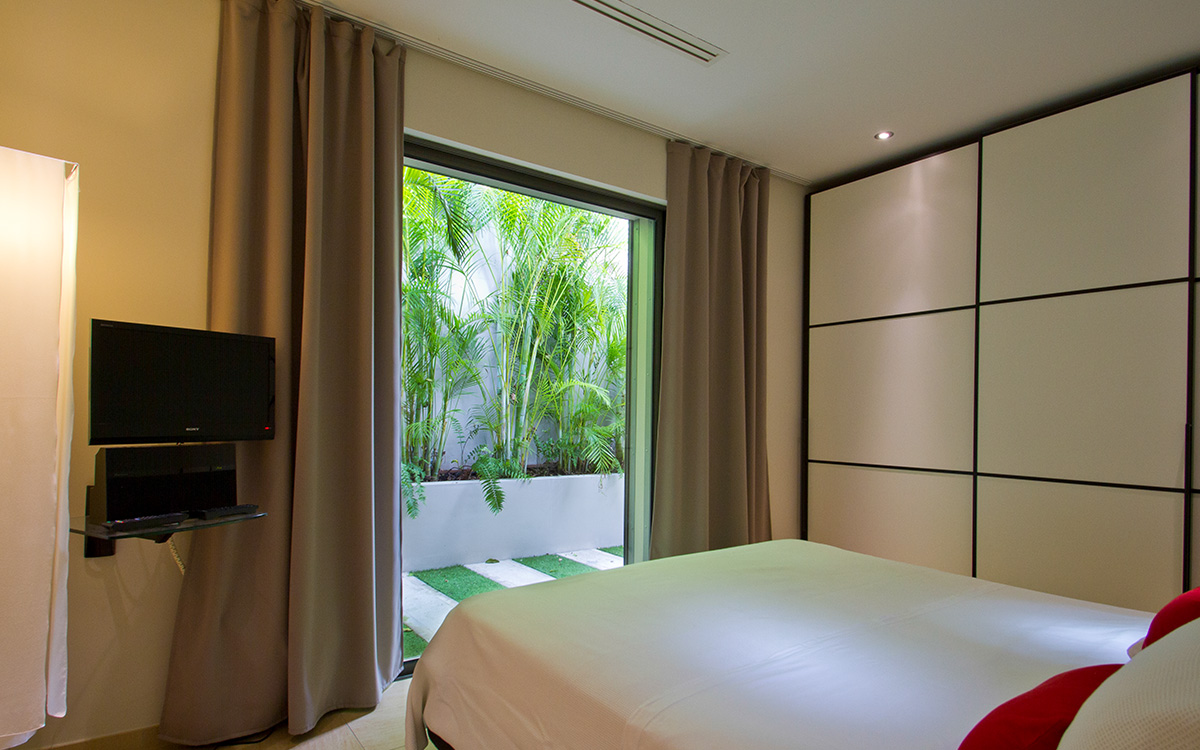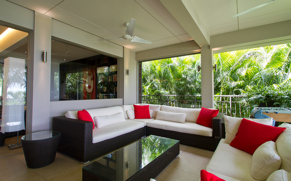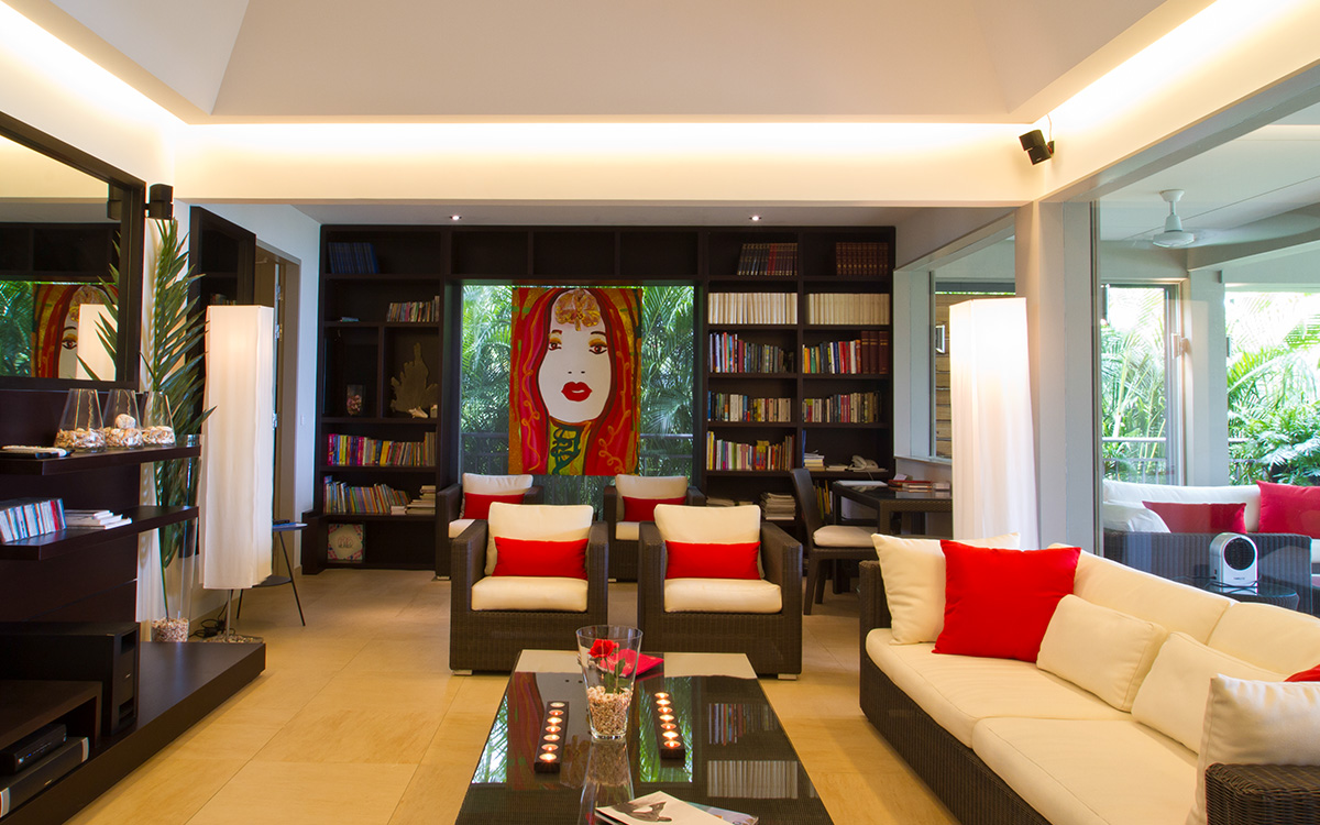 Villa Cumulus, also known as WV CML, is a 6-bedroom villa located in Lorient within minutes of the beach and shopping. This villa offers views of the bay and nearby islands.This "green" estate offers many energy-saving systems, such as solar panels and water recycling. Vegetation has been carefully planted to maximize shade and air circulation. An inverter central system air-conditioner requires different units of the estate to be closed off completely to maintain air-conditioning.The bright and modern living room has glass doors, which open onto a terrace with ocean views. Located off the living room is a well-stocked library, which is perfect for book lovers. The gourmet kitchen, with a wine cooler and charcoal barbecue, faces the view and opens to an outdoor dining area with seating for 14 guests.Four bedrooms are located around the tropical gardens and have king-size beds and ensuite bathrooms with rain showers (one shower is outdoors). The fifth bedroom, located downstairs next to the well-equipped fitness area, has a king-size bed, kitchenette, living area, and an attached private bathroom with rain shower. The sixth bedroom is located in a classic Creole-style bungalow and is ideal for children, with beds and furnishings all adapted to a smaller scale. Two bedrooms, each with a twin bed, living area and kitchenette.Loungers surround the large pool on the terrace, which has an outdoor living area, ping-pong table, and petanque court. The house also comes with WiFi, U.S. and French satellite TV, and laundry services for children's clothes upon request.Villa Cumulus comes with house cleaning services six days a week, except on holidays. During the December holidays, the villa rents at the full occupancy rate regardless of how many bedrooms are used. This villa is suitable for young children but does not allow pets or smoking.