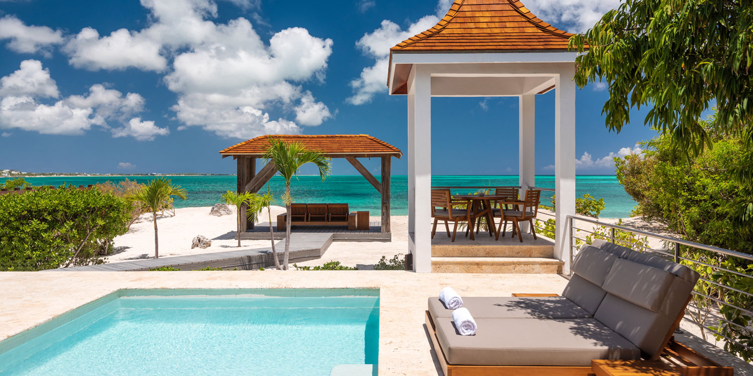 Beach Enclave at North Point hosts nine private villas on ten acres of tropical gardens at Babalua Beach. These newly constructed contemporary beach villas offer access to an essentially private beach, airport meet/greet and villa transfer, daily housekeeping/butler services, on-site security and reception, access to a fully equipped beachfront fitness center, and complimentary daily yoga. Daily pool and beach set-up service is standard and use of non-motorized watersports equipment is complimentary. Private chefs are available either for a meal or for your entire stay, on request.  On-site concierge services ensure that each stay will be customized and carefree.Each of the homes displays stunning contemporary beach architecture and blurs the lines between indoor and outdoor living. Open plan living spaces feature soaring ceilings, local woods, coral stone and expansive glass doors fully opening to private infinity edged pools. Kitchens are equipped for chefs, and at least two bedrooms in each villa face the ocean. Each villa offers a minimum of two master bedrooms, in one or two story homes, with four or five en-suite bedrooms each.The six beachfront homes each have an unique, secluded beach area boasting a wooden deck which hosts a summer kitchen, firepit and outdoor shower. Steps cut into the limestone lead to the beach and deck. The three ocean view homes sit higher on the cliff-side and provide panoramic ocean views.  Their beach decks are just a short walk or complimentary golf cart ride away, while the Princess Alexandra National Park is just off-shore for amazing snorkeling experiences. The setting is lush and takes advantage of tropical breezes and of the ocean and reef views.Beach Enclave North Point provides a private villa experience, with hotel amenities and services, on beautiful Providenciales, Turks and Caicos. Guests will find Beach Enclave North Point a perfect beach vacation setting for families, friends or special events; set only five minutes from Grace Bay town and the international airport.**International Property Awards 2016  Five Star Award for Best Residential Development in the Caribbean