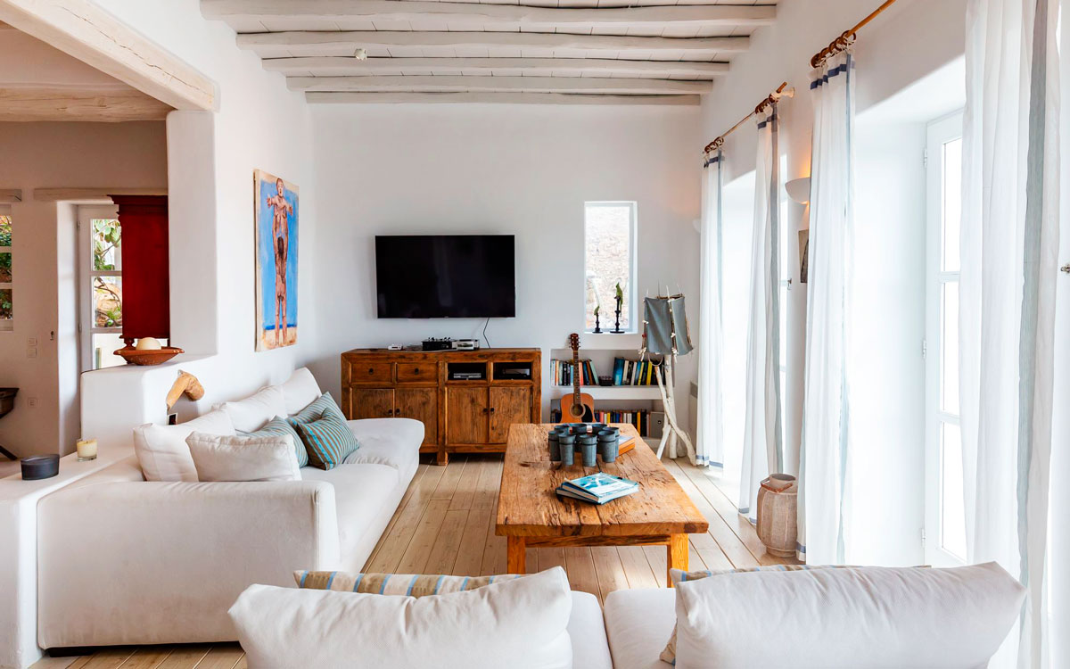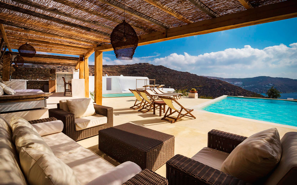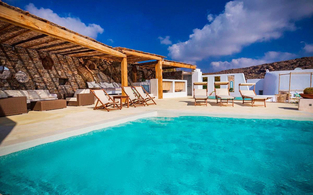Perched on a hillside, this charming six-bedroom summer retreat offers traditional Cycladic design and modern amenities. It also features views over the rocky countryside, bay of Agrari and the blue waters of the Aegean. A perfect getaway for families and groups of friends, the villa is designed for outdoor living, making the most of the view and natural features of the land.Diverse lounge spaces are available throughout the property. The main one lies adjacent to the brand-new, private swimming pool, which is positioned to enjoy the sunning panorama. The inside spaces feature the same exquisite design and livability, with minimalist sensibility and unique style flourishes dictated by the owners’ passions and travels. The villa is divided into three independent units.The villa is only 700 meters to Agrari beach – one of the most tranquil and uncrowded beaches on Mykonos. Sh..