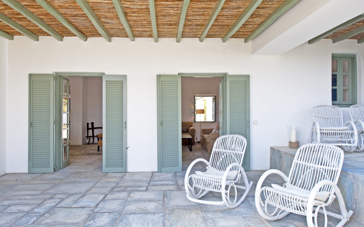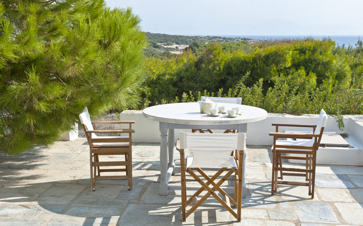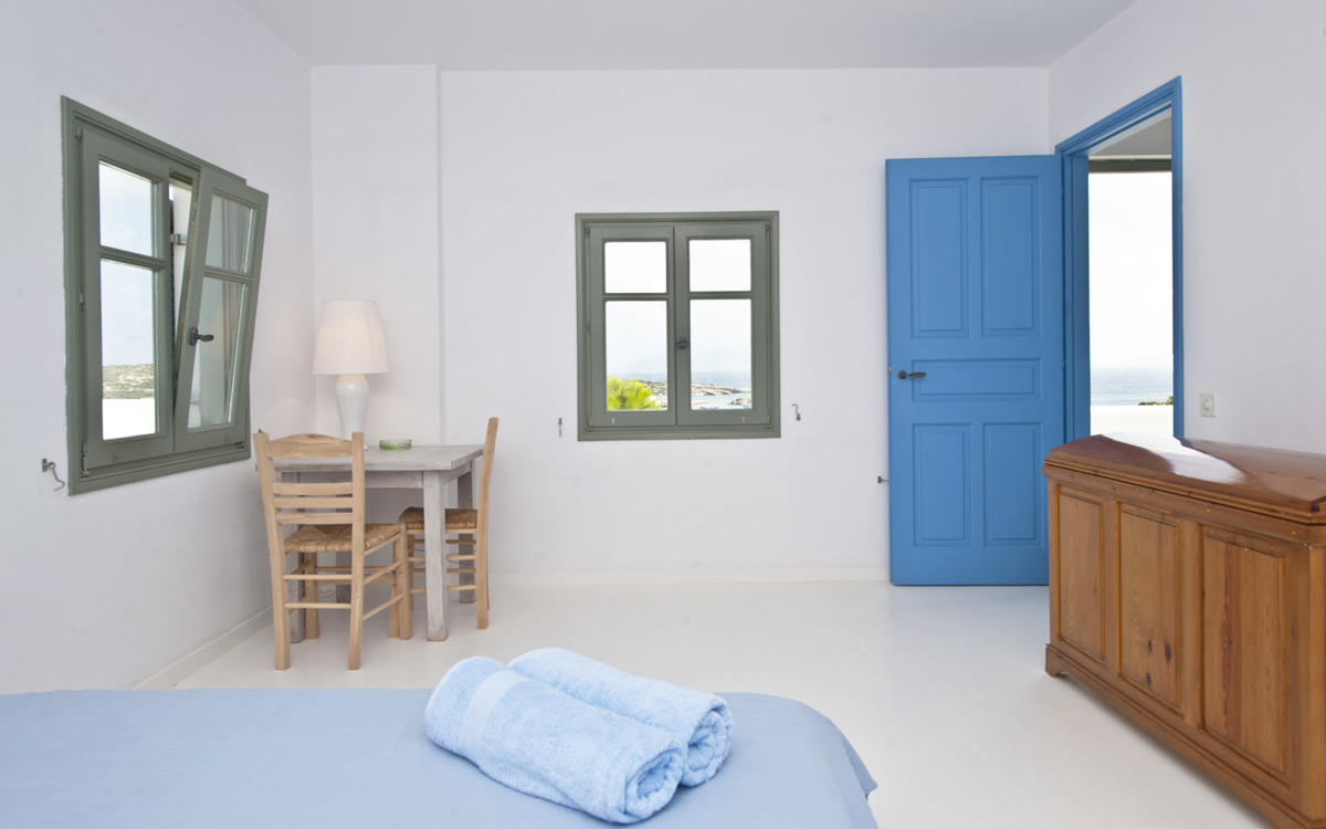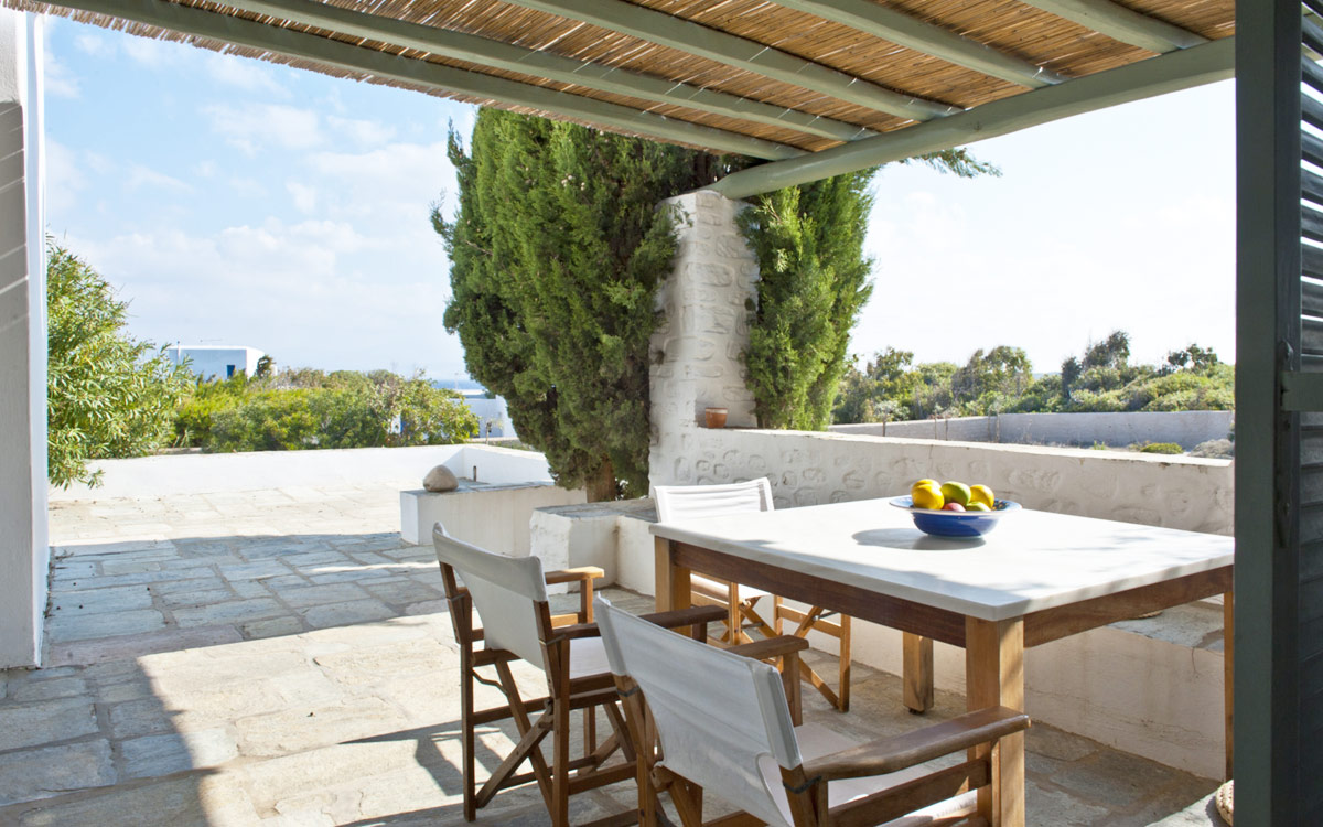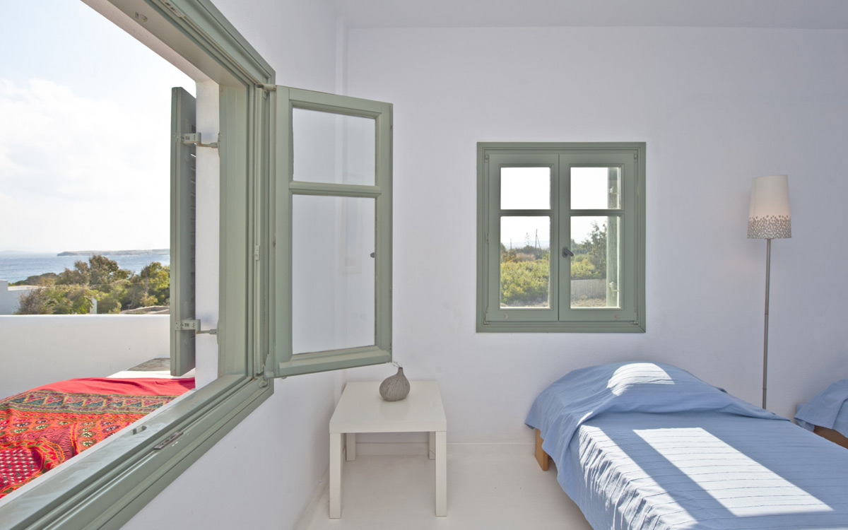 Elia Villa is located within meters of the beach at Santa Maria on Paros, with direct beach access. Paros is known for its beautiful beaches and scenic landscapes. Wind surfing, biking, trekking, sailing and many other outdoor activities are nearby.This traditional Cycladic villa features various large terraces. An interior courtyard features outdoor dining facilities, private pool, barbecue, an outdoor shower and guest bathroom. There is a guest suite adjacent to this courtyard, providing three twin beds and private bathroom with shower; ideal accomodations for teenagers or older children.The ground floor hosts the open plan living areas including the living room, office nook, TV room and library, a dining area and a fully equipped kitchen. The T.V. room and library offers a fireplace. Front and rear terraces open from the open living area and host outdoor dining..