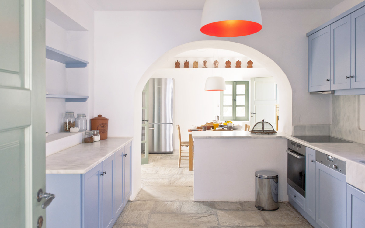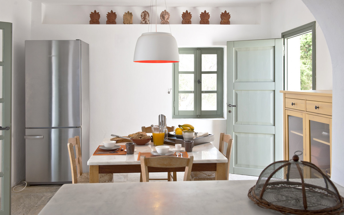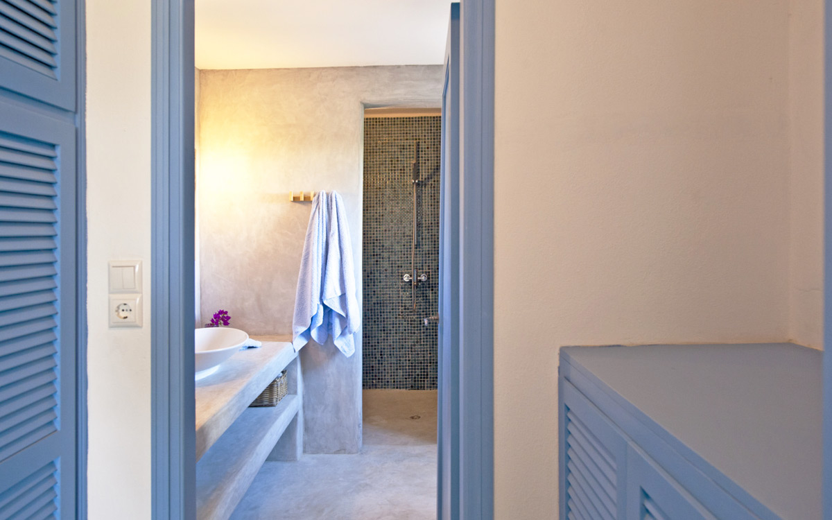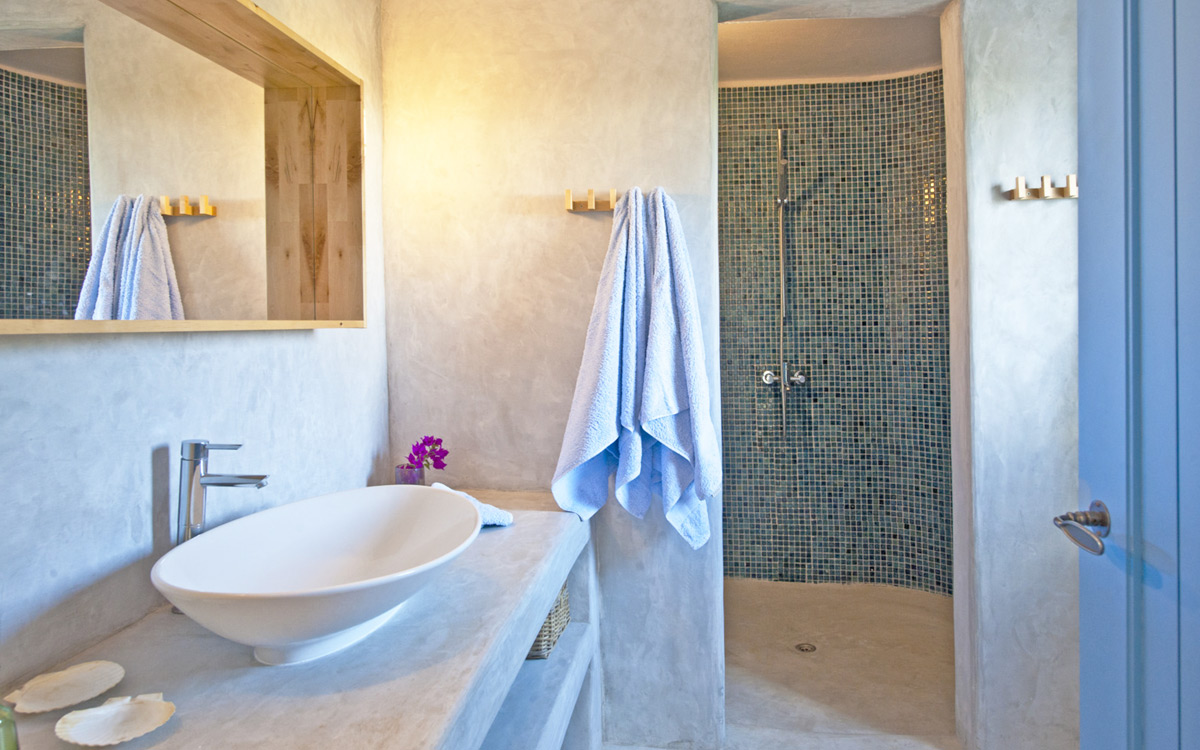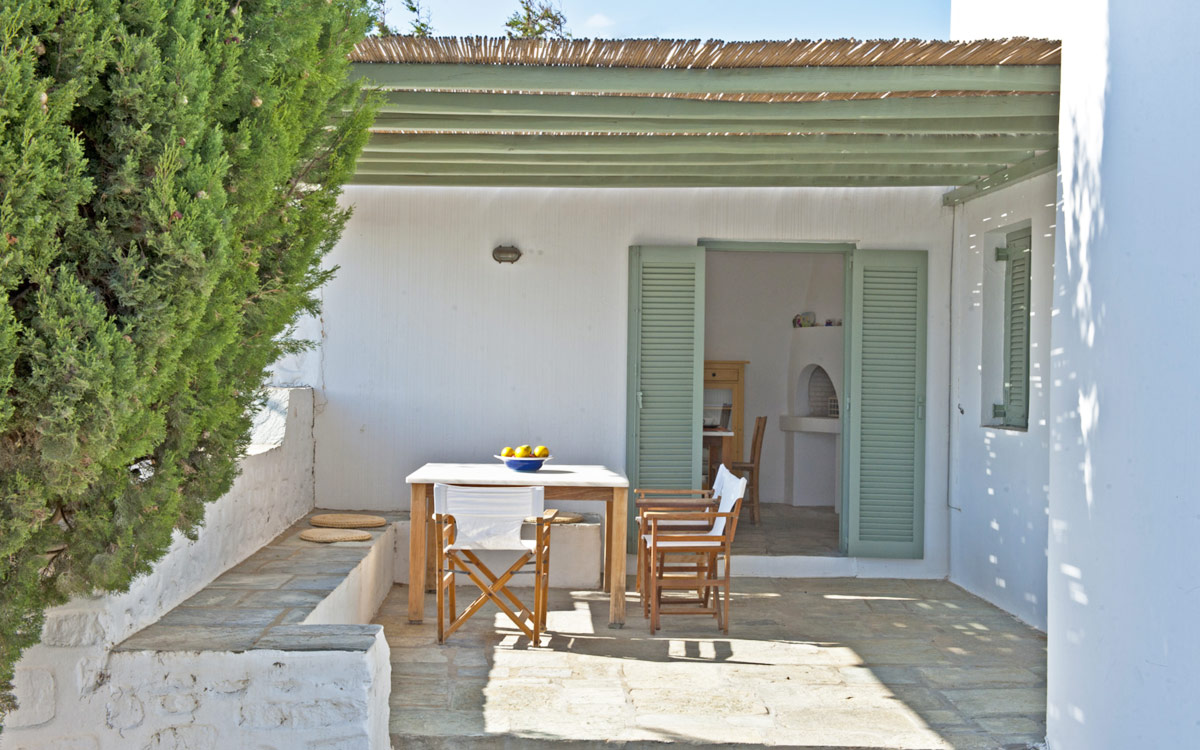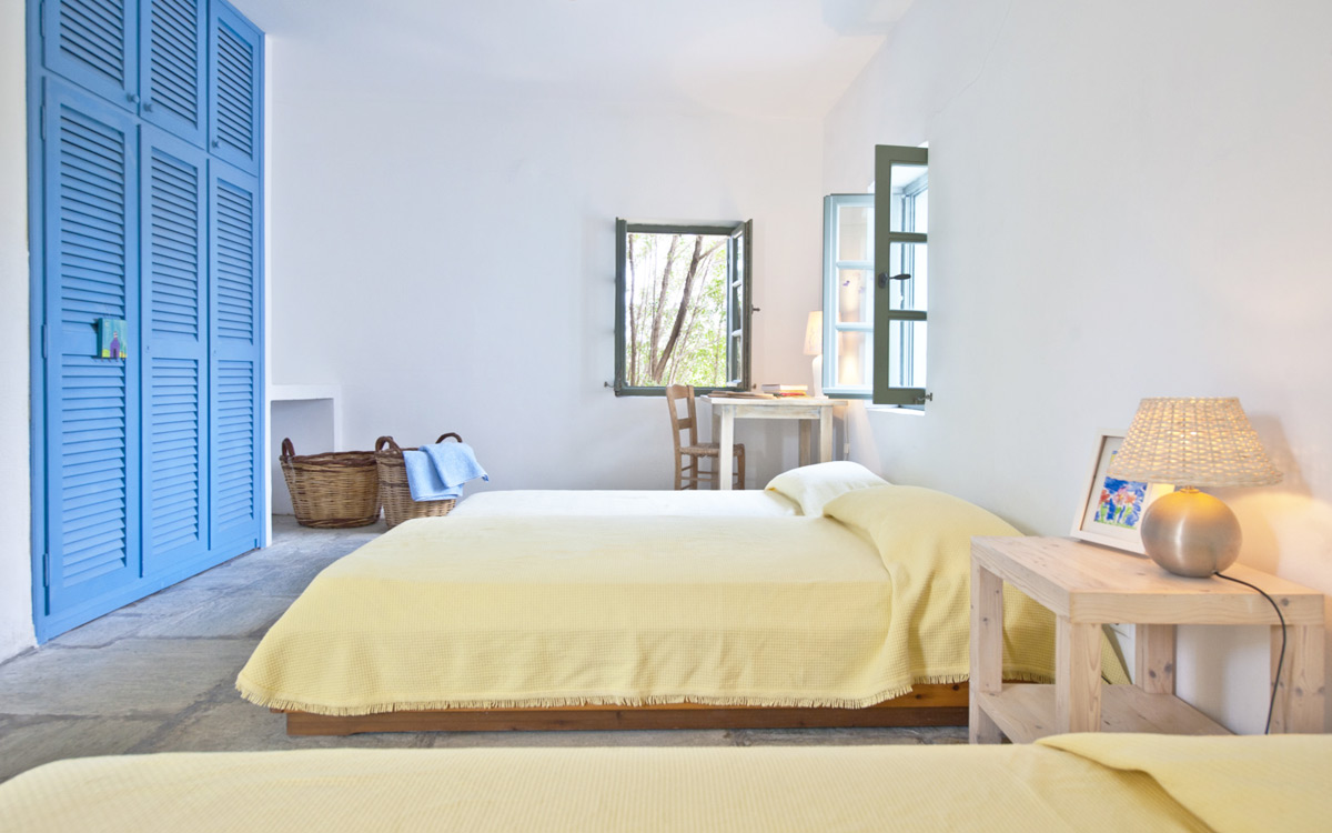 Elia Villa is located within meters of the beach at Santa Maria on Paros, with direct beach access. Paros is known for its beautiful beaches and scenic landscapes. Wind surfing, biking, trekking, sailing and many other outdoor activities are nearby.This traditional Cycladic villa features various large terraces. An interior courtyard features outdoor dining facilities, private pool, barbecue, an outdoor shower and guest bathroom. There is a guest suite adjacent to this courtyard, providing three twin beds and private bathroom with shower; ideal accomodations for teenagers or older children.The ground floor hosts the open plan living areas including the living room, office nook, TV room and library, a dining area and a fully equipped kitchen. The T.V. room and library offers a fireplace. Front and rear terraces open from the open living area and host outdoor dining..