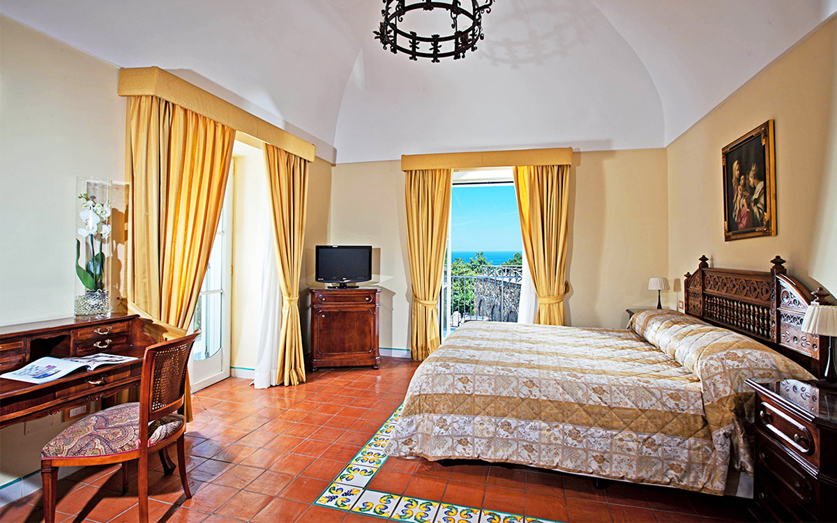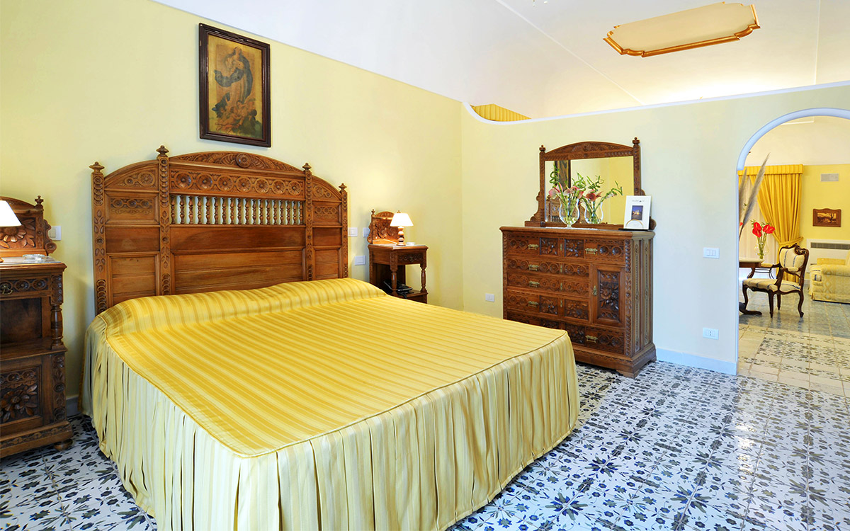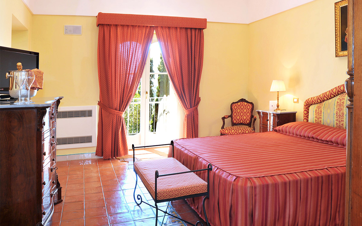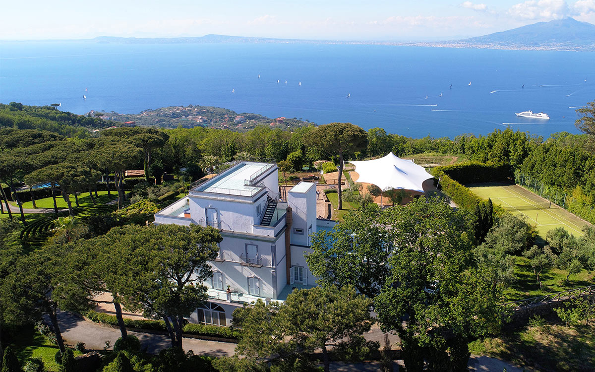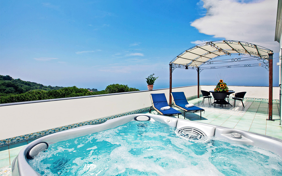Overlooking the extraordinary Gulf of Naples with the imposing Mount Vesuvius on the horizon, the three-floor Villa Dodola rests in a quiet and private part of the hills between the Sorrentino and the Amalfi coasts, only a few kilometers from the lively Sorrento, and just a 20-minute drive from the sandy beach of Massa Lubrense. The traditional villa blends beautifully with the local colors and vegetation and offers a sense of comfort that guests seem to greatly appreciate. The private ample swimming pool with hydromassage area is the ideal place for escaping the summer heat, and the sauna offers guests benefits for the body and mind. Villa Dodola is truly a gem for large groups seeking a traditional ambiance, modern comfort, and complete privacy, not to mention a stunning sea view!
