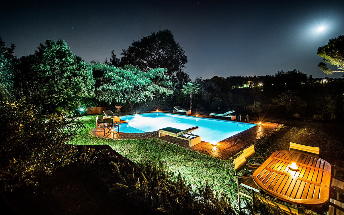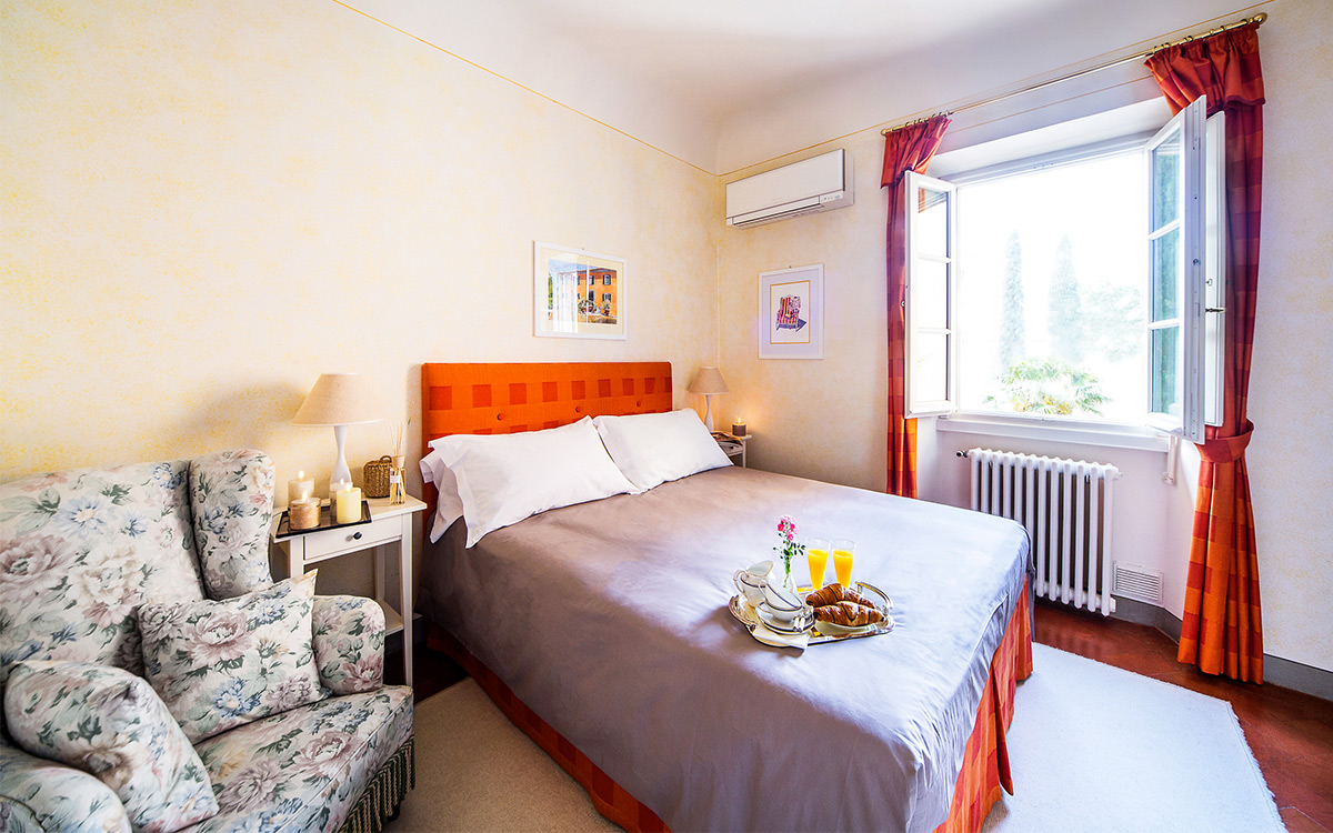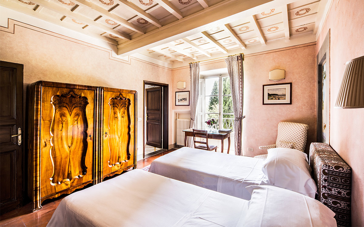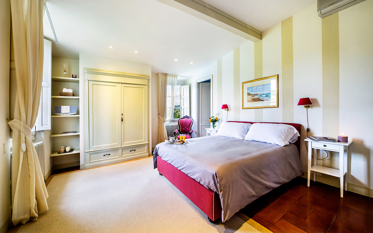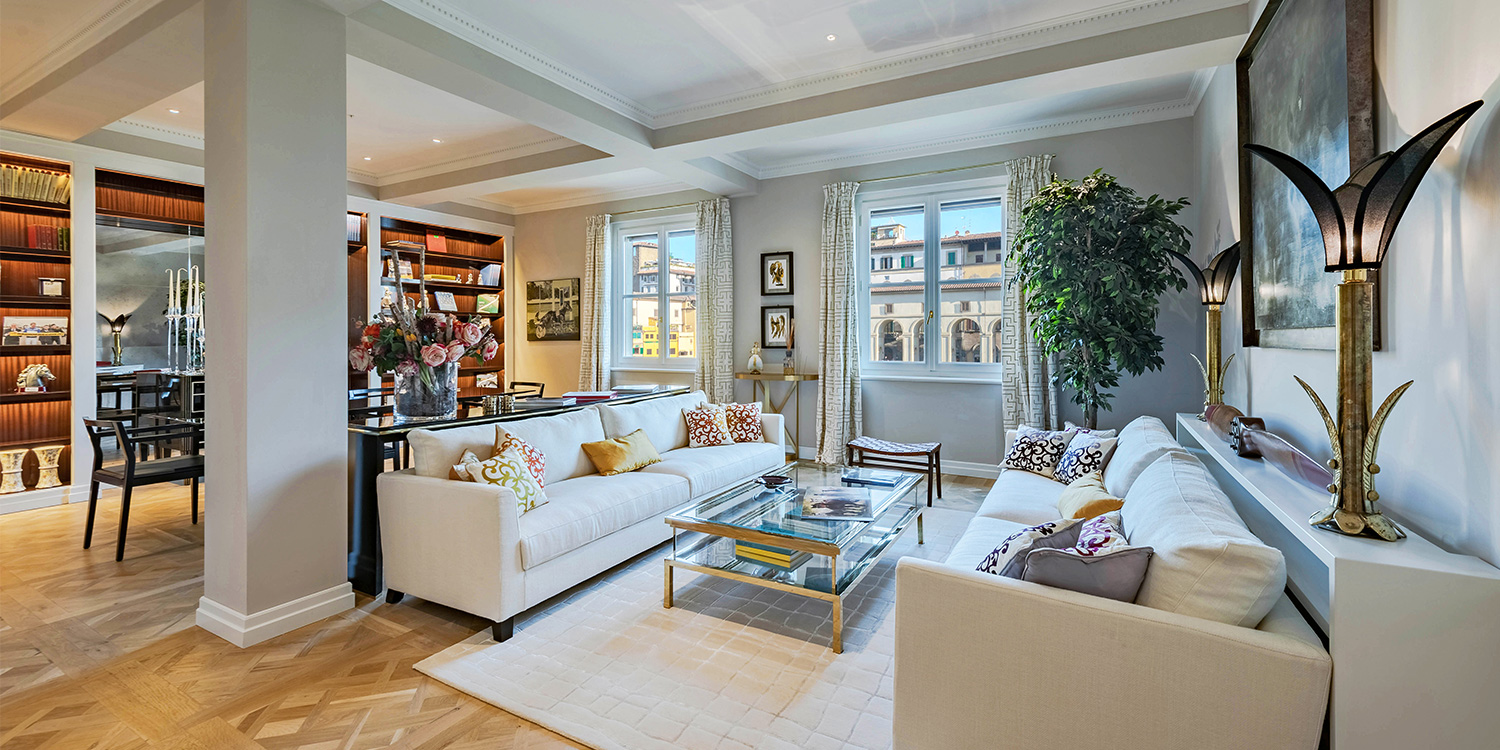 Just minutes away by car or bus from the historical center, the freshly renovated Villa Duca is set atop one of most prestigious hills of Florence, peacefully surrounded by olive groves, cypress trees, and beautifully manicured gardens. This elegant luxury three-story villa features a picturesque panoramic courtyard with direct views of the Florentine countryside. A glorious boulevard of grand cypress trees leads the guests to this sun-flooded home, perfectly suited for sophisticated living and entertaining.