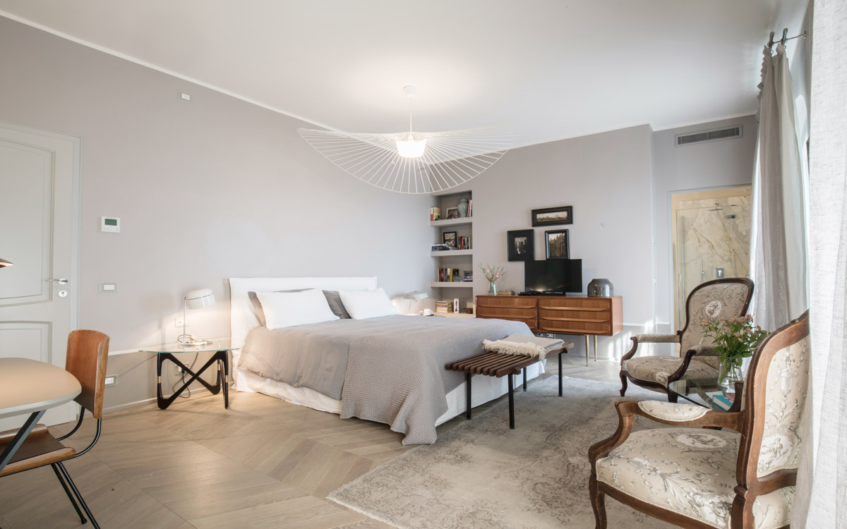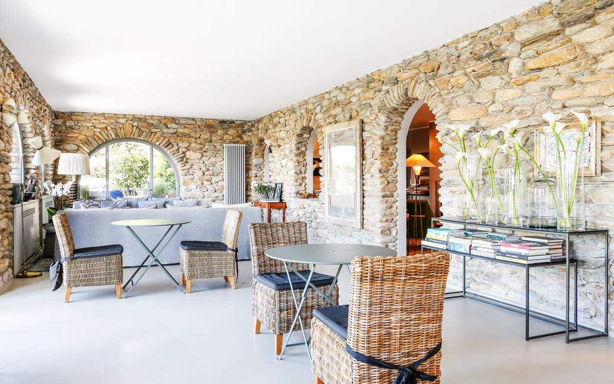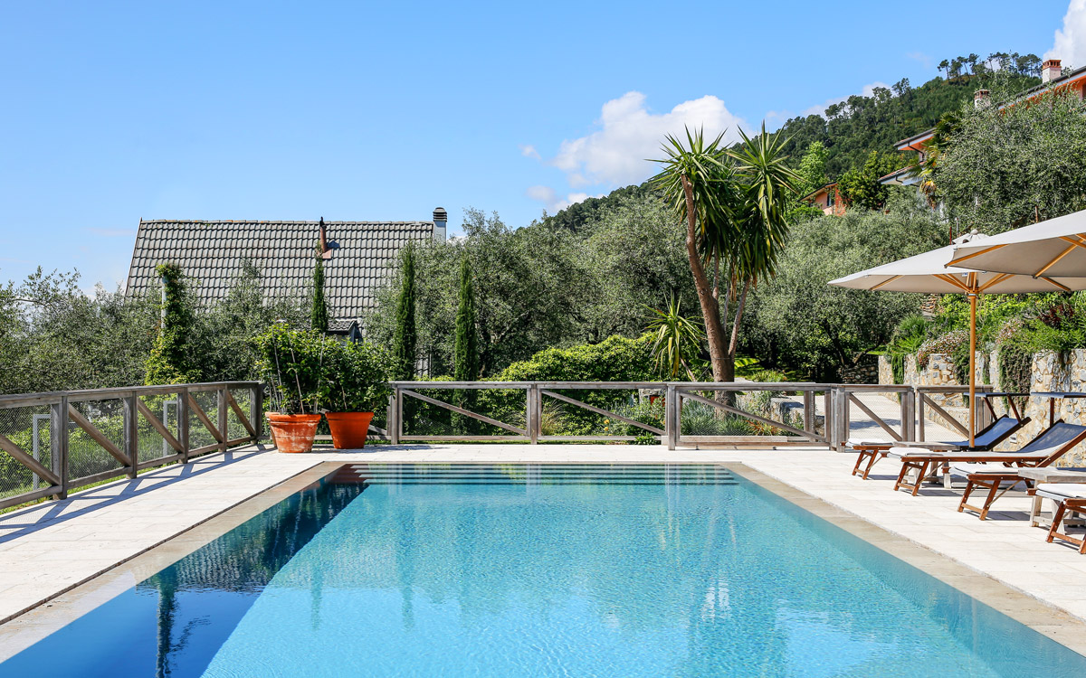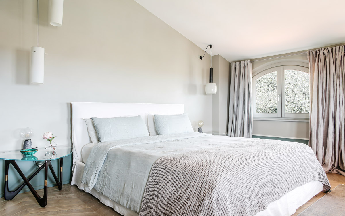 Nestled in the hills that surround Forte dei Marmi and its coast, this estate offers eight bedrooms decorated in elegant style with color-washed walls in pale shades, contemporary fabrics, books and items, which lend a very personal touch. The home design approached with research in the estate contextual, technical, and historical contexts, results in a new-classic style with stone, resin floors, quality washed wooden boards and marble. Modern, comfortable and soothing, this is a bohemian-chic retreat full of light and a welcoming vibe. The living areas include two large rooms for watching TV or reading a book in front of the fireplace, the breakfast area with a fully equipped open kitchen. The refined atmosphere is also enhanced by its light shades of nude and grey, enriched with vintage pieces and Italian design ’50s and’ 60s pieces. The style encompasses traditional elements bro..