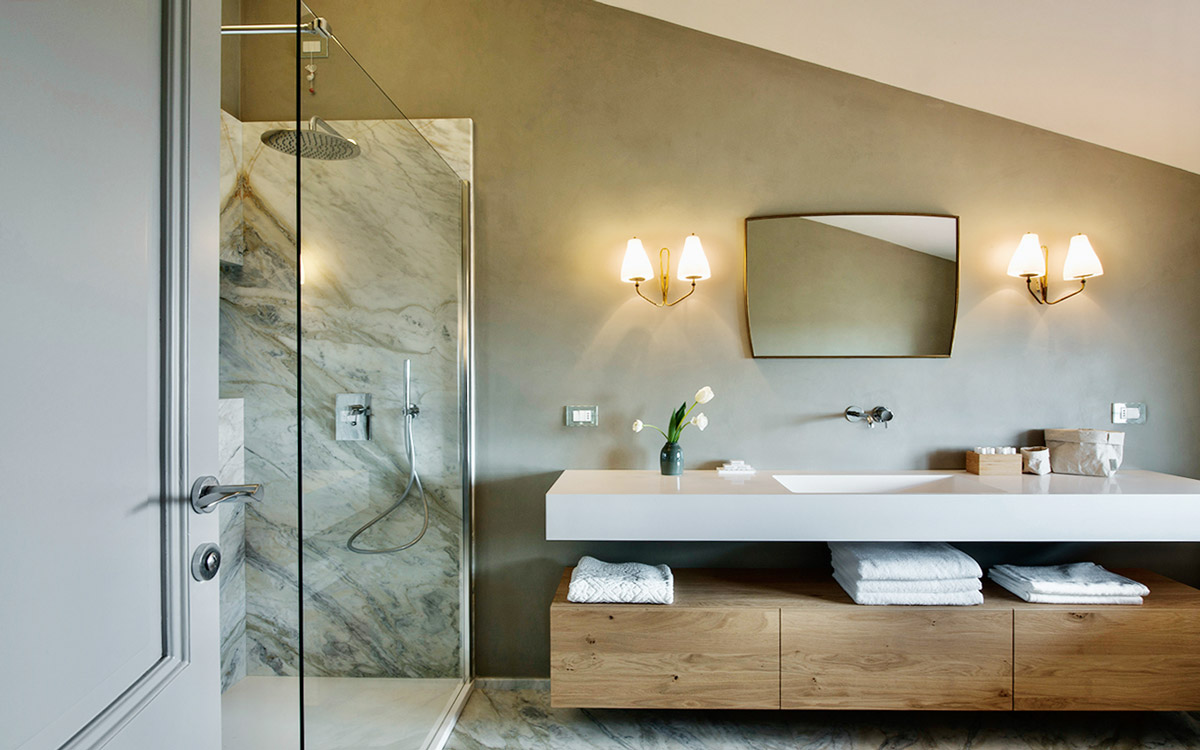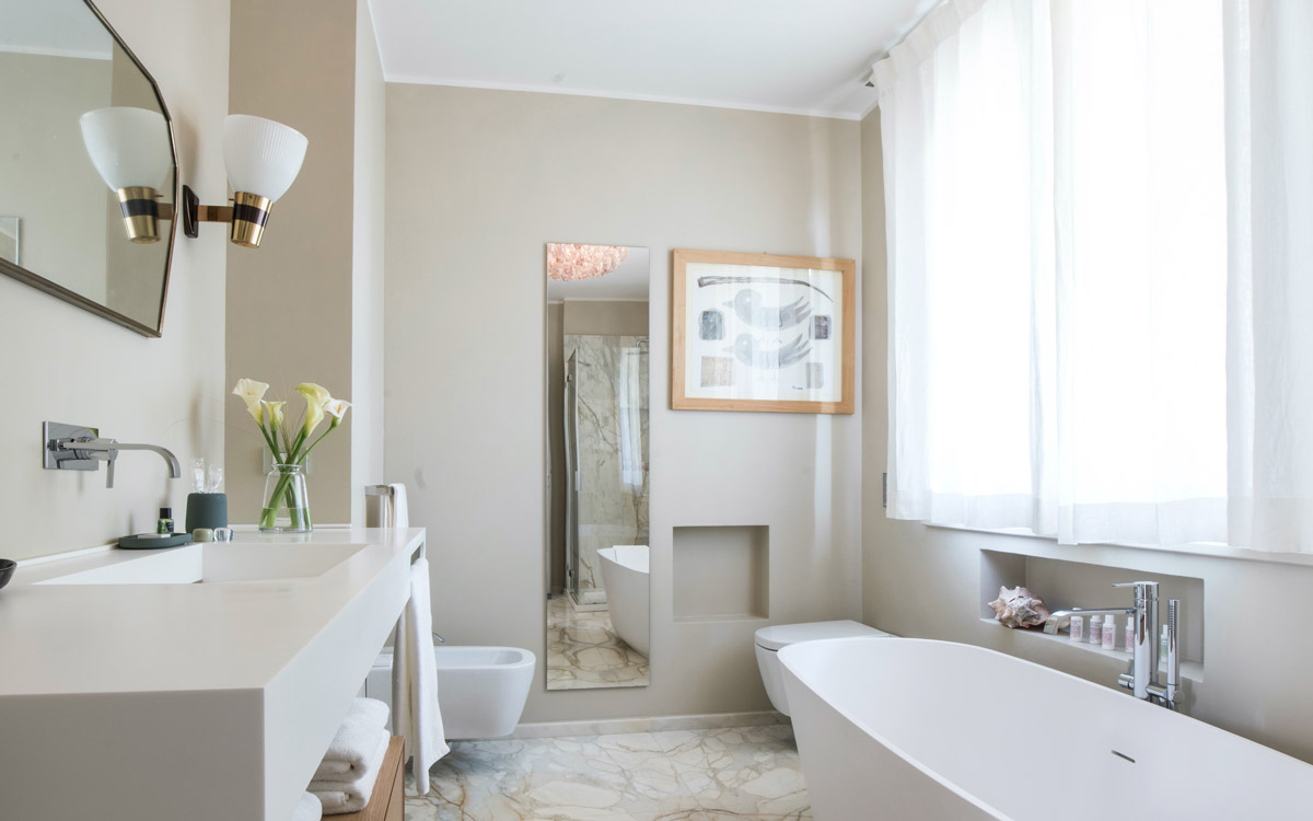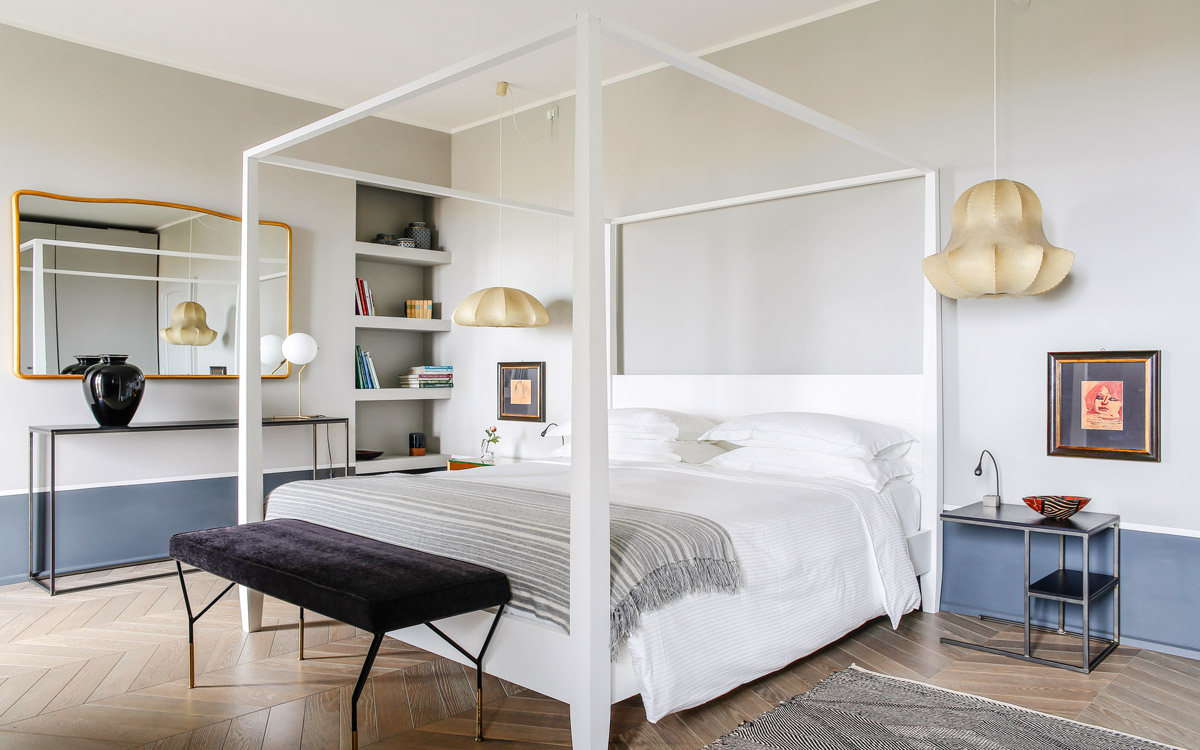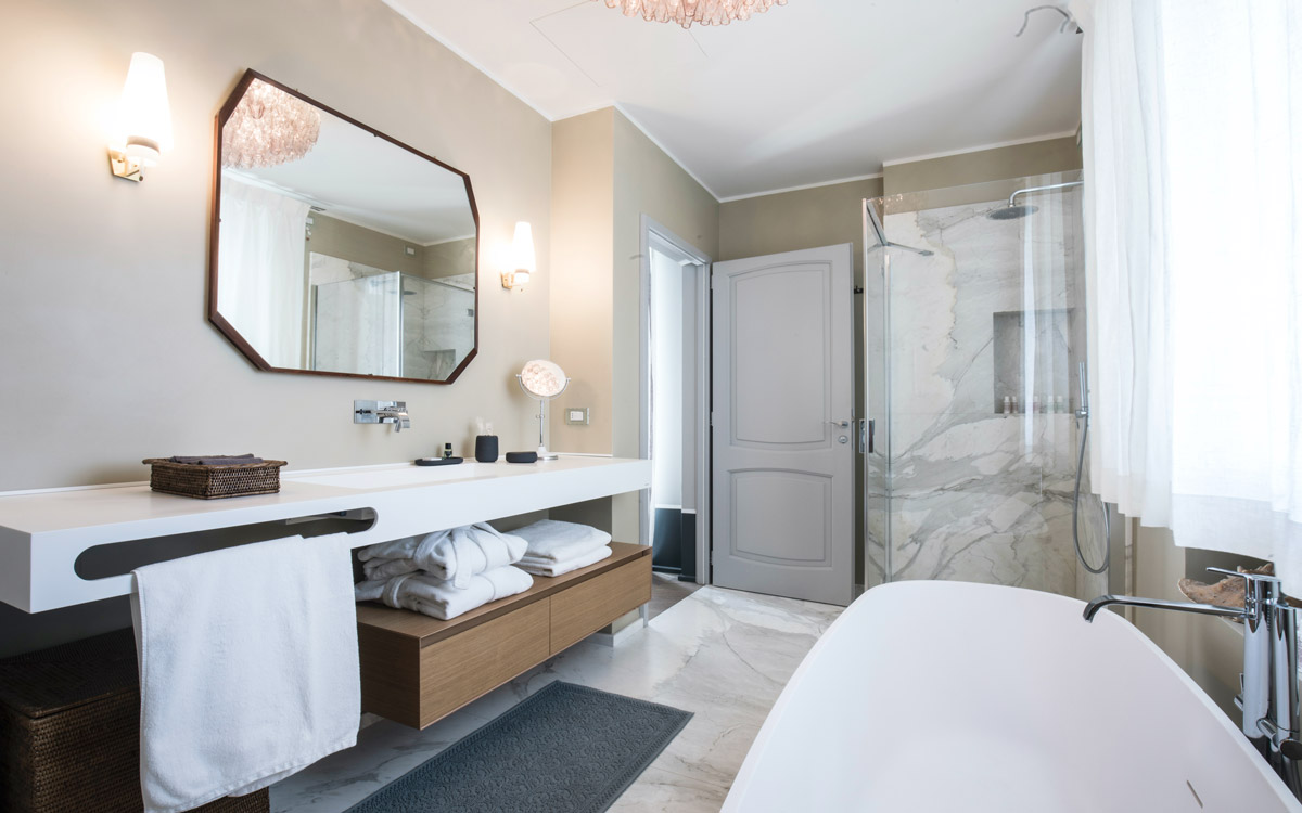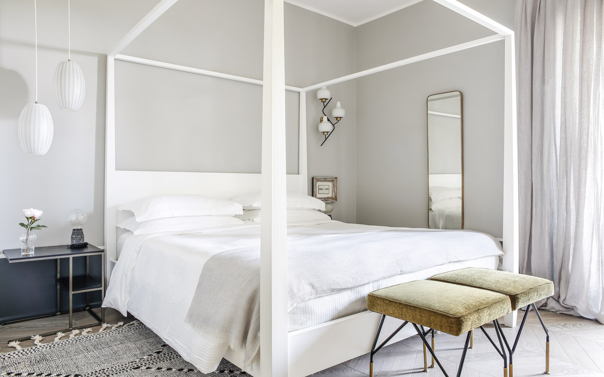 Nestled in the hills that surround Forte dei Marmi and its coast, this estate offers eight bedrooms decorated in elegant style with color-washed walls in pale shades, contemporary fabrics, books and items, which lend a very personal touch. The home design approached with research in the estate contextual, technical, and historical contexts, results in a new-classic style with stone, resin floors, quality washed wooden boards and marble. Modern, comfortable and soothing, this is a bohemian-chic retreat full of light and a welcoming vibe. The living areas include two large rooms for watching TV or reading a book in front of the fireplace, the breakfast area with a fully equipped open kitchen. The refined atmosphere is also enhanced by its light shades of nude and grey, enriched with vintage pieces and Italian design ’50s and’ 60s pieces. The style encompasses traditional elements brought into the now with updated add-on’s for today’s lifestyles: there is a heated pool equipped with beach umbrellas and deck loungers, offering a breath-taking 360° view of the coast; for fitness enthusiasts, the estate features a shady corner gym equipped with Technogym machines, a comfortable sauna with an outdoor shower. The lush garden, studded with Mediterranean plants, citrus, and flowers, enables guests to enjoy many corners to regenerate and to live a relaxing time.