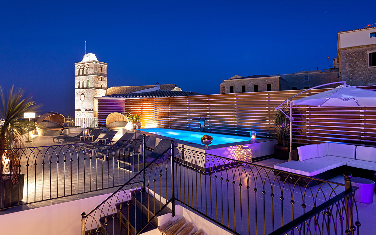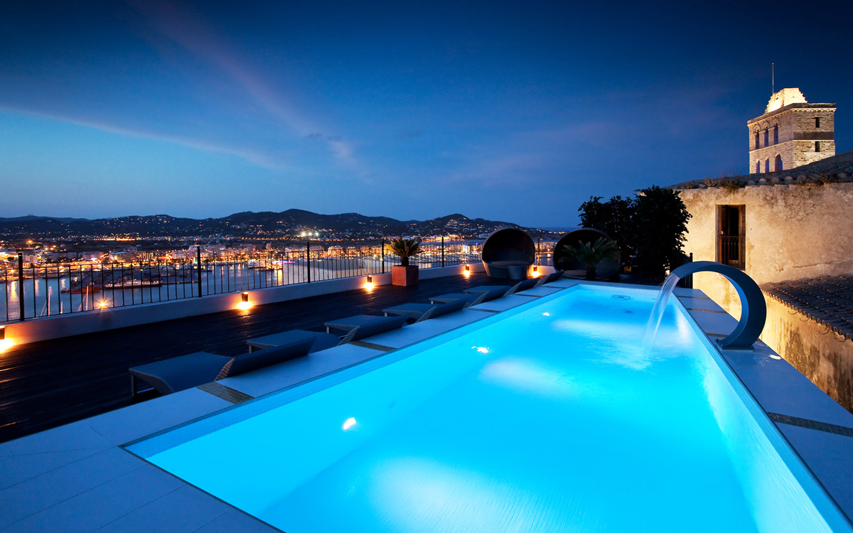 Originally built in 1740, El Alcázar has been lovingly renovated to provide modern comforts and amenities, while retaining its historical charm. It's privileged location in the old walled city, at the top of the Unesco World Heritage citadel, offers panoramic views of Ibiza town and towards Formentera. Ibiza center is easily reachable on foot.The pool is located on the rooftop and is surrounded by the rooftop terrace and lounge. A beautiful fountain spills into the pool, offering a soothing backdrop for daytime swims or evening al fresco meals...seemingly on top of the world!The three interior levels of El Alcázar host spacious sitting areas on each level, indoor dining for twelve, a fully equipped kitchen, and a home cinema system. Wooden beams and other original building details mix flawlessly with contemporary finishes and furnishings. There are six spacious bedrooms..