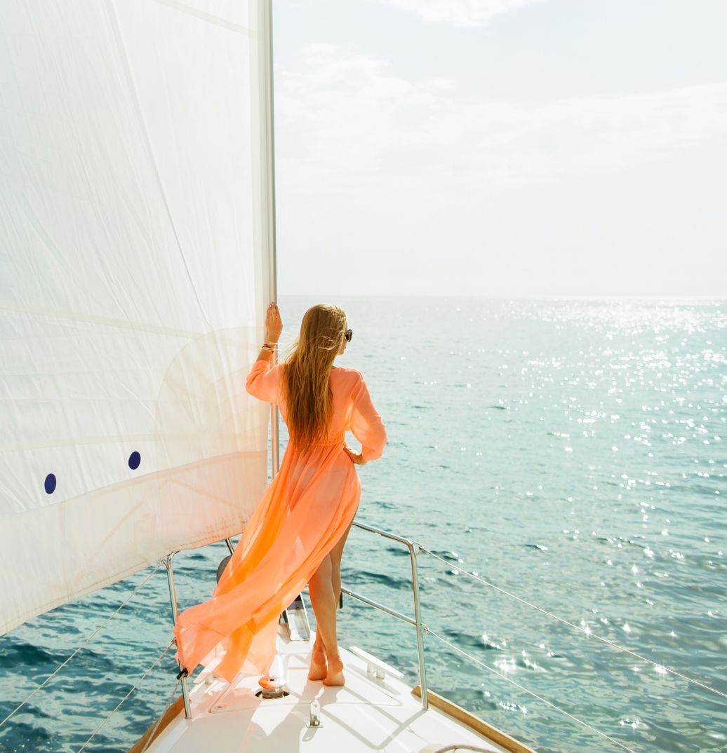 Set off on a private yacht charter, sipping island cocktails along the shimmering sea.