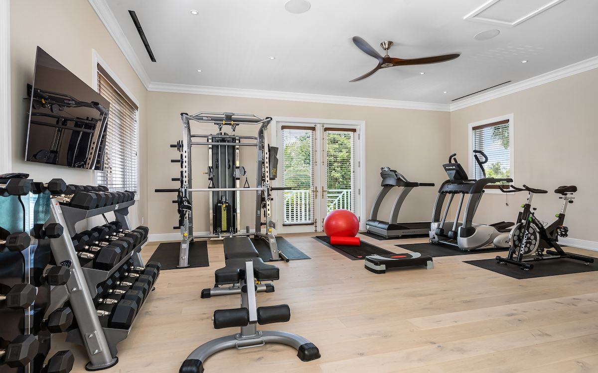 Treadmill, Elliptical Machine, Spin Bike, Weights, Balls & Mats