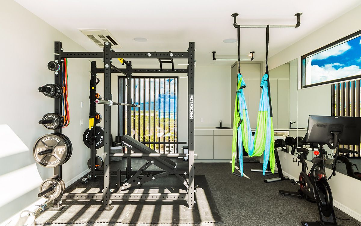 Free Weights, Peloton Bike, Yoga Mats & Rouge Fitness Power Cage