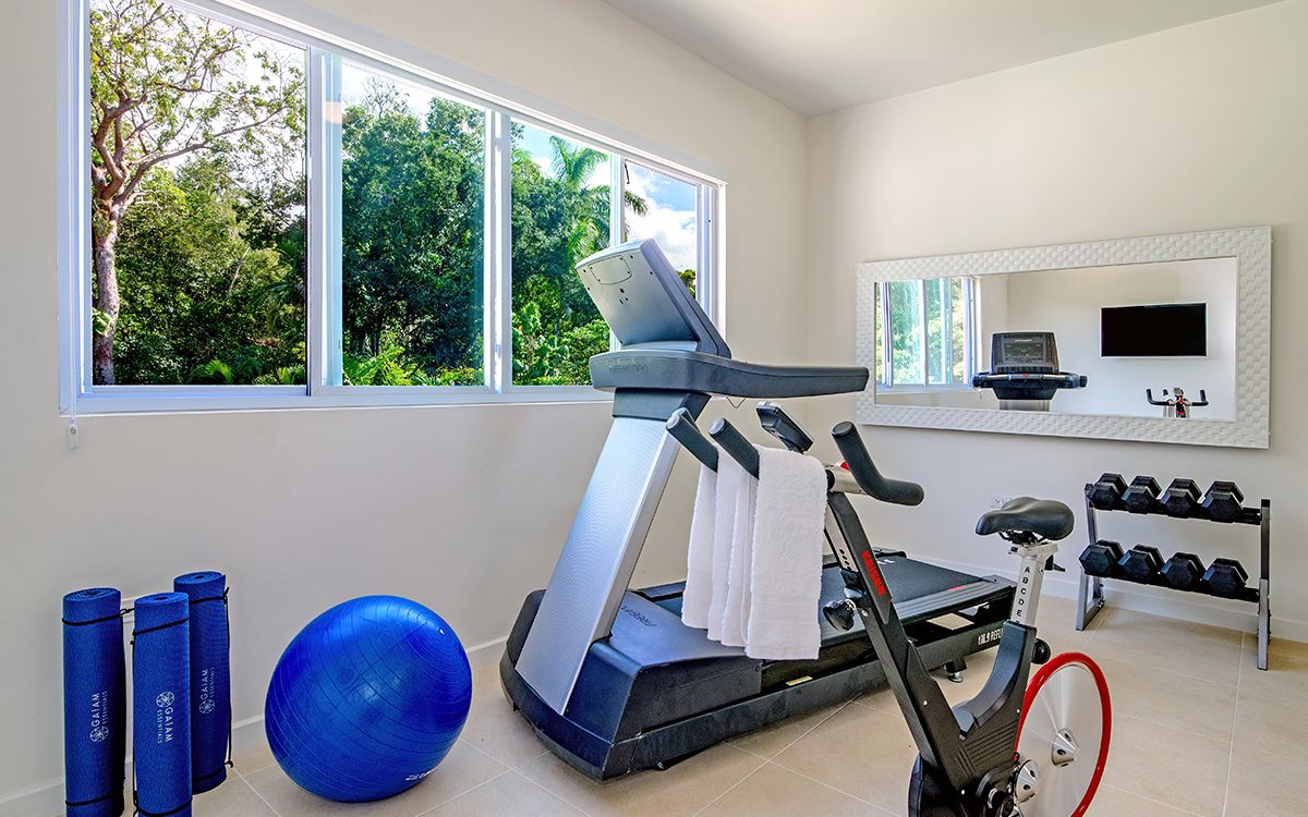 Treadmill, Spin Bike, Weights, Stability Ball & Mats
