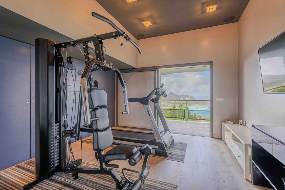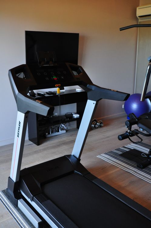 Treadmill, weight bench and weights