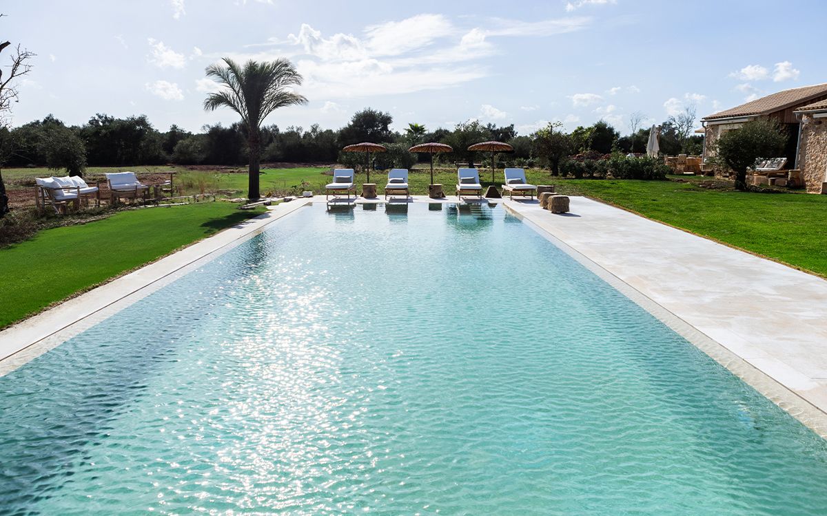 Umbrellas, Sun Loungers & Pool House